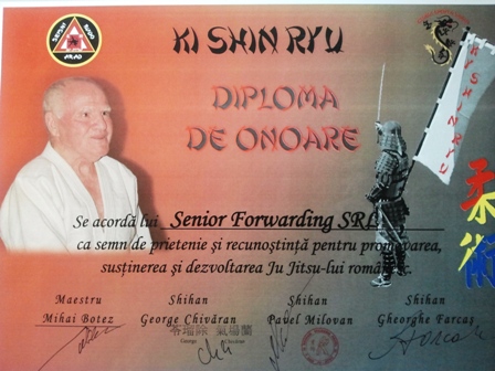 Pozitia echilibrata adoptata de Senior Forwarding® se armonizeaza cu spiritul AIKIDO, una din cele mai remarcabile forme ale artelor martiale. Pentru sprijinirea si promovarea acestui spirit nobil, Senior Forwarding® sponsorizeaza Federatia de Aikido Traditional KIAI, precum si alte cluburi de arte martiale.